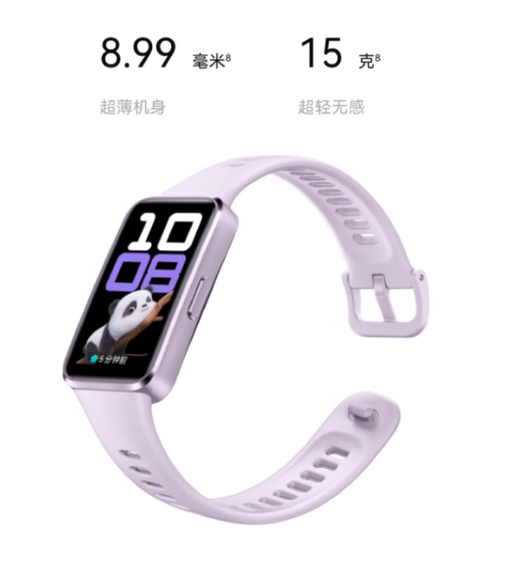 尽管相比前代产品华为手环8的14克重量略有增加,为15克,但这样的重量在腕间依然近乎无感。